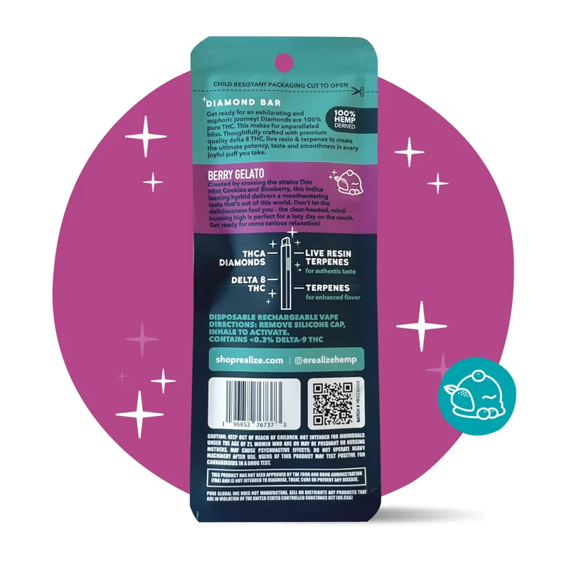 Realize THCA Diamond Bar Live Resin (THCA + D8) 2 Gram Vape Pen