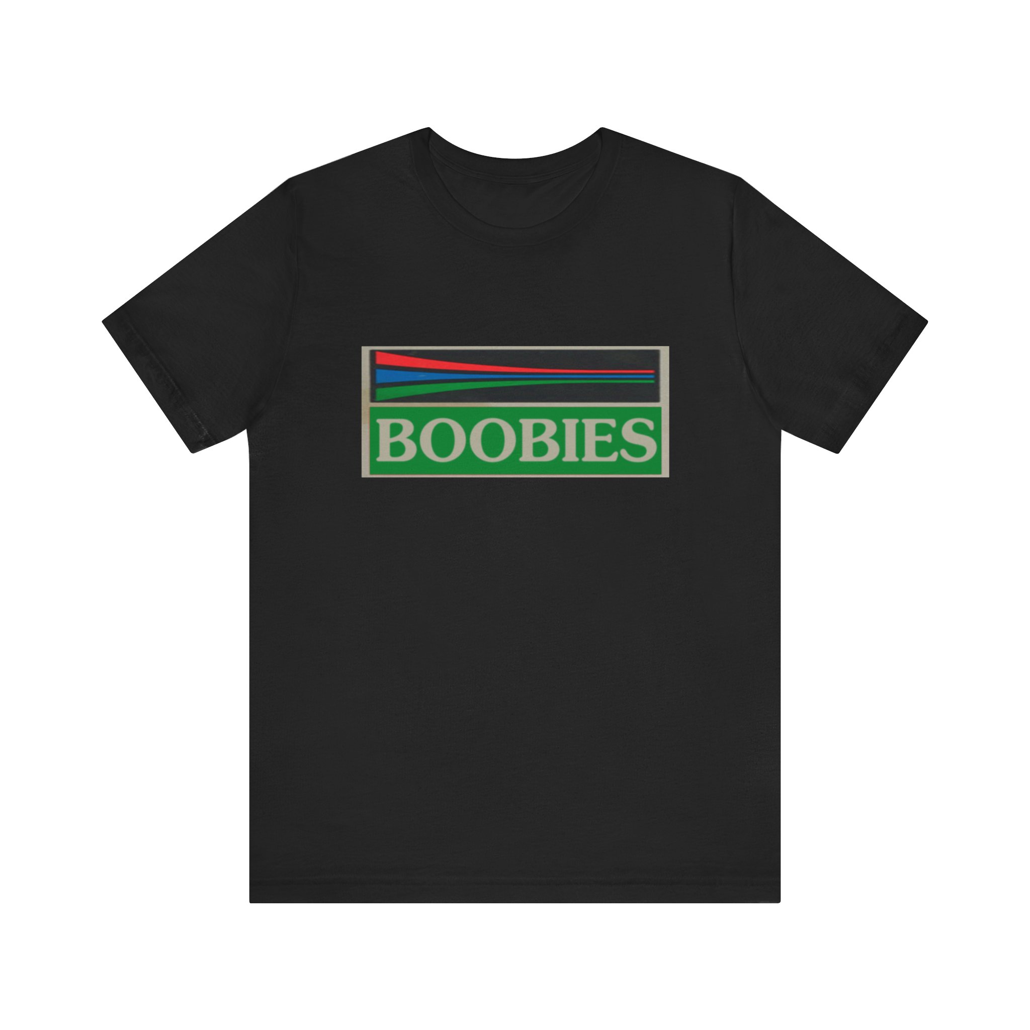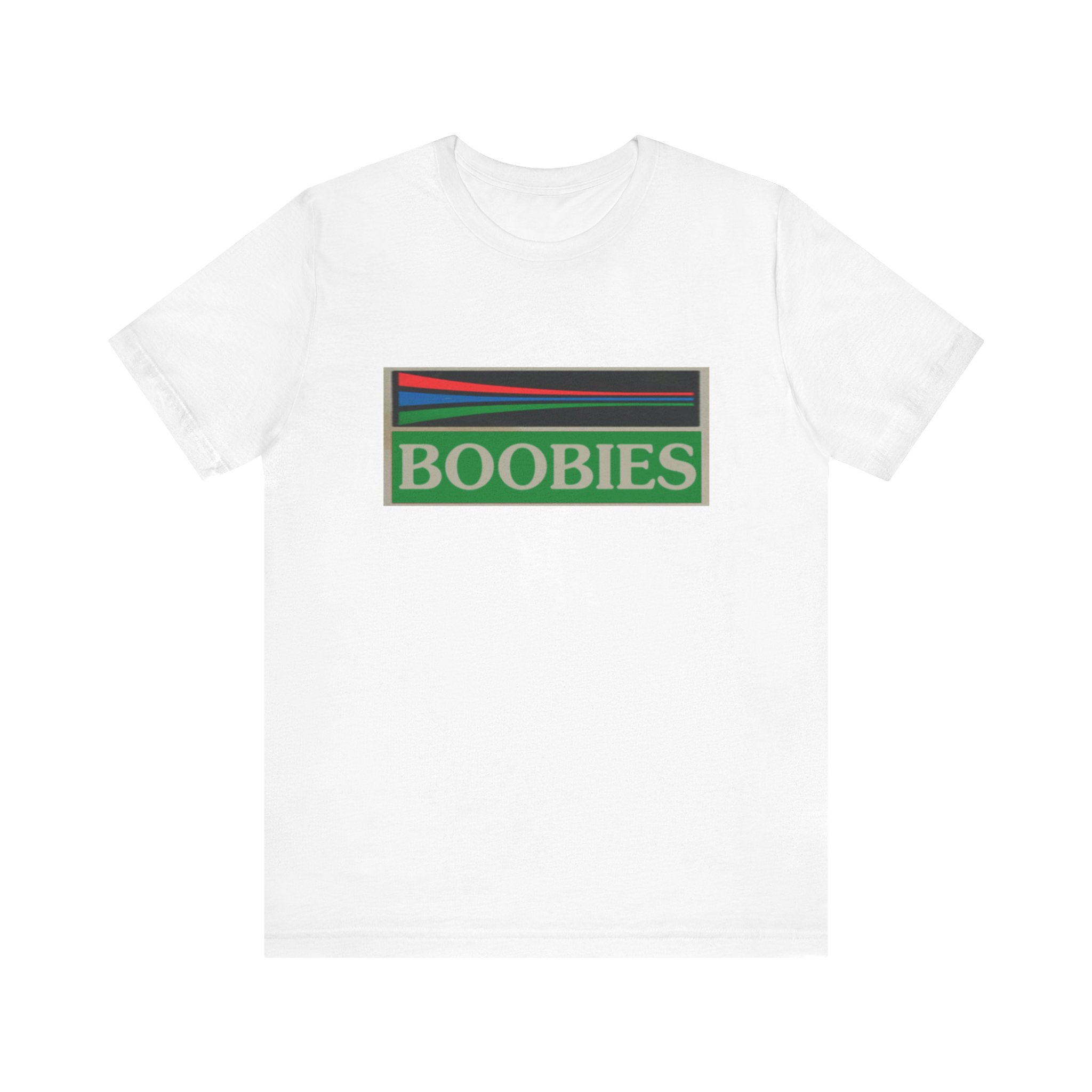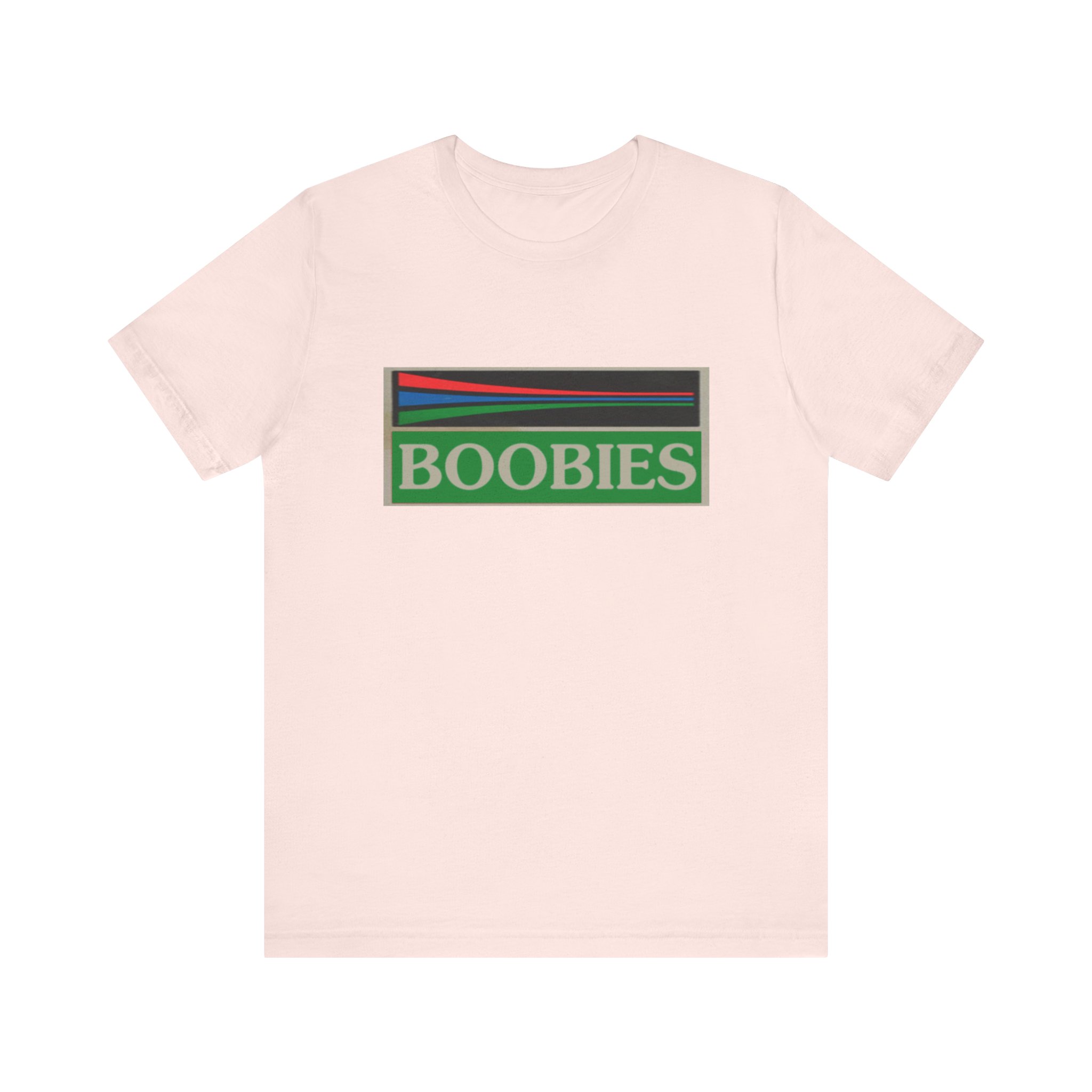 This BOOBIES!!! Tee is available in these colors: White, Soft Pink, Black and these sizes: XS, S, M, L, XL, 2XL