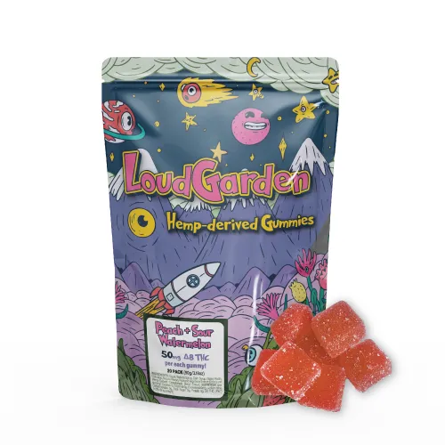 Find a larger-than-usual dose of D8 in these Loud Garden 50mg gummies. Though the peach & sour watermelon gummies included herein might each be delicious, please remember to go slow: for your first time eat a portion of a gummy and wait to see how it effects you.
