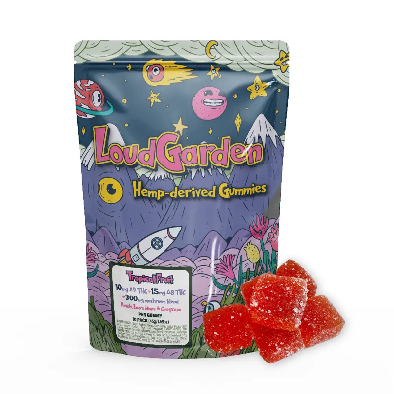 This could be an exciting gummy. There’s a mix of Delta 8 and Delta 9 THC plus a mushroom blend. These gummies combine the fun cannabinoids that Loud Garden sells with a blend of “functional” mushrooms Reishi, Lion’s Mane and Cordyceps.
