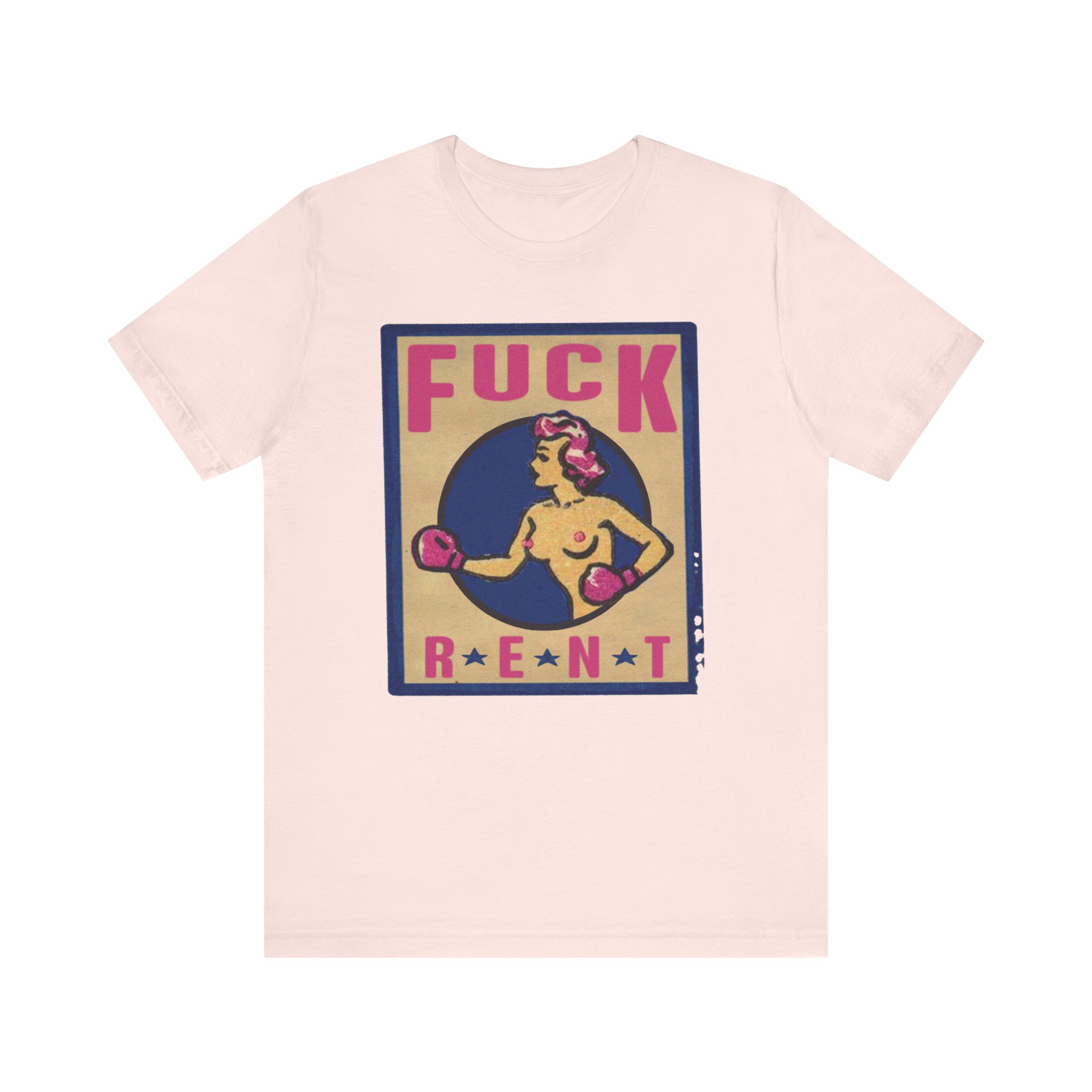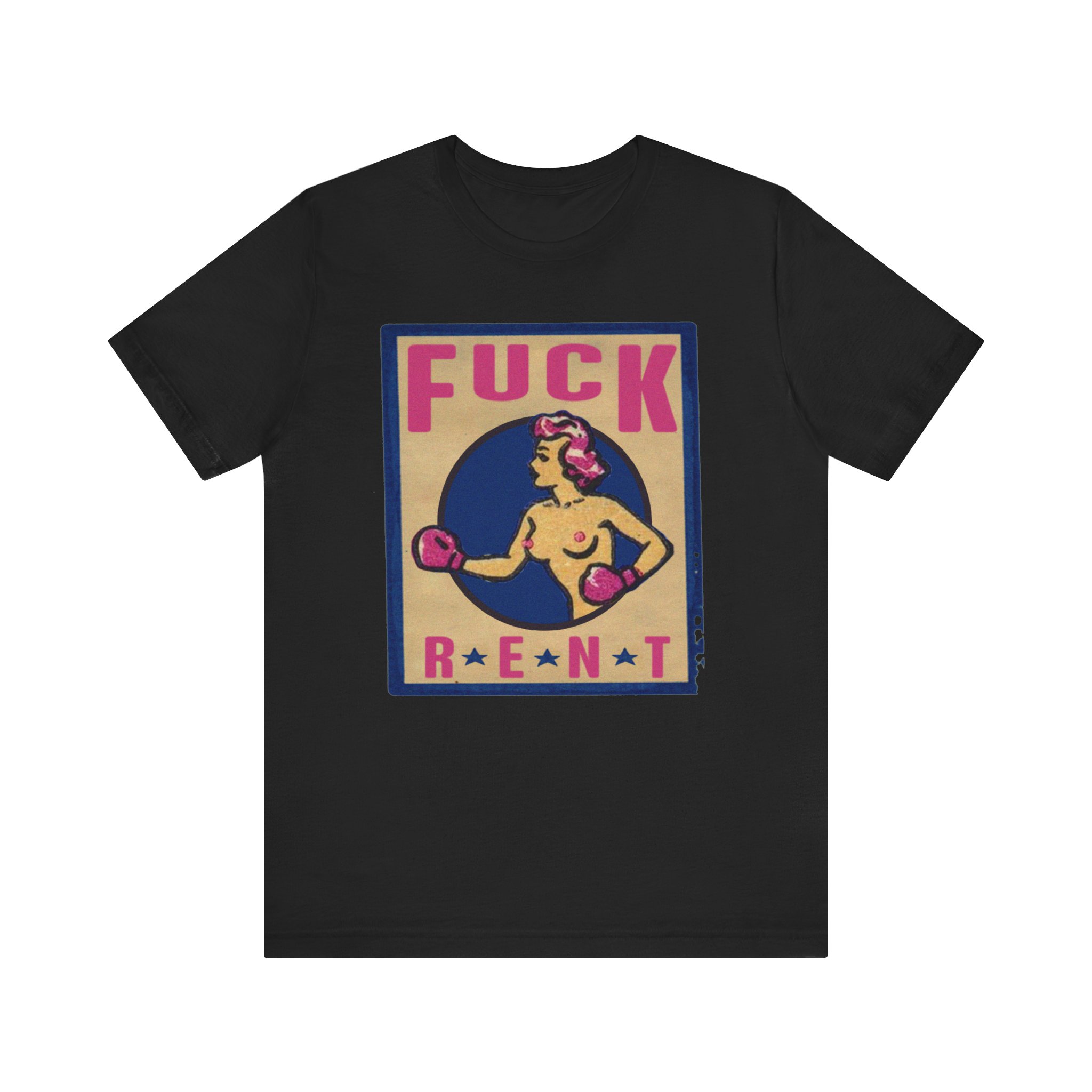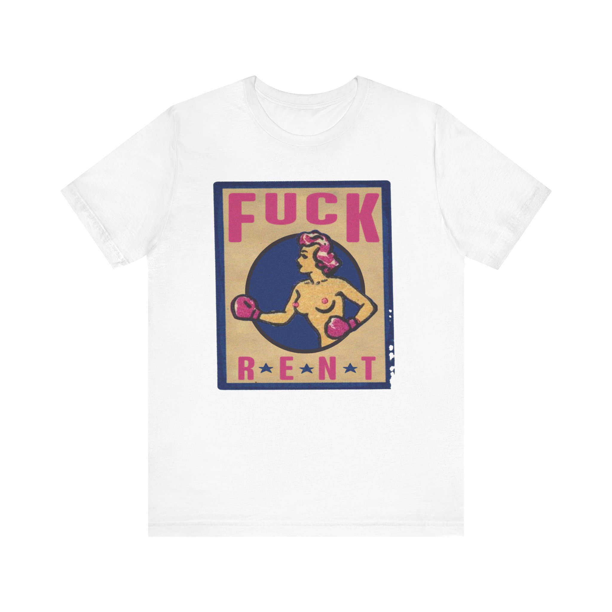 This Fuck Rent Tee is available in these colors: White, Soft Pink, Black, Light Blue and these sizes: XS, S, M, L, XL, 2XL