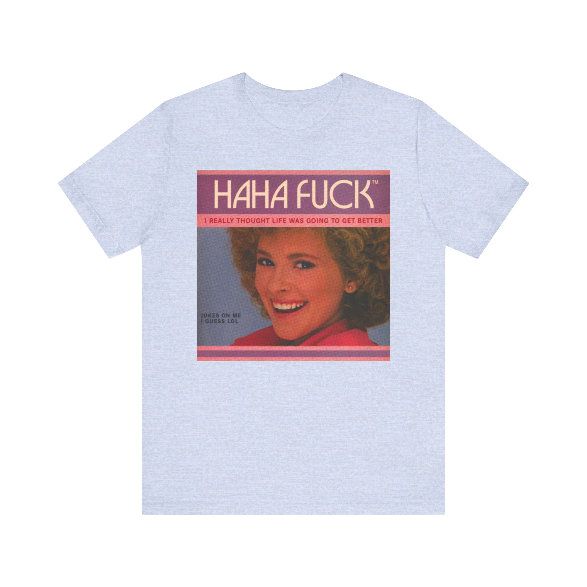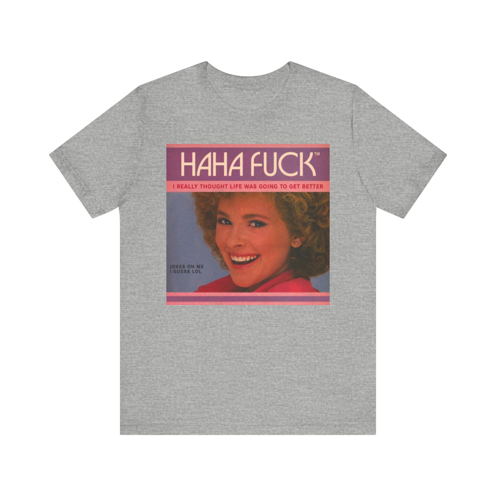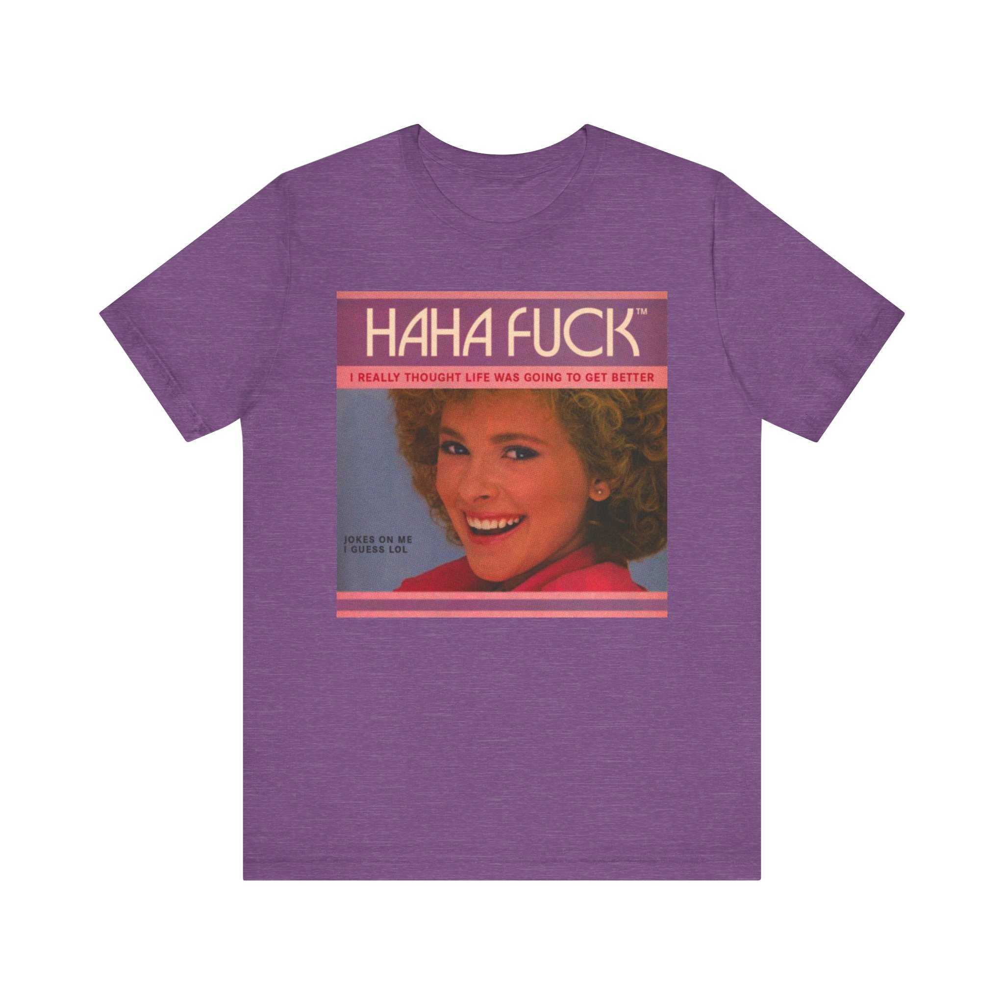 This Jokes On Me Tee is available in these colors: White, Natural, Heather Prism Blue, Athletic Heather, Heather Team Purple, Heather Bubble Gum and these sizes: XS, S, M, L, XL, 2XL, 3XL, 4XL, 5XL