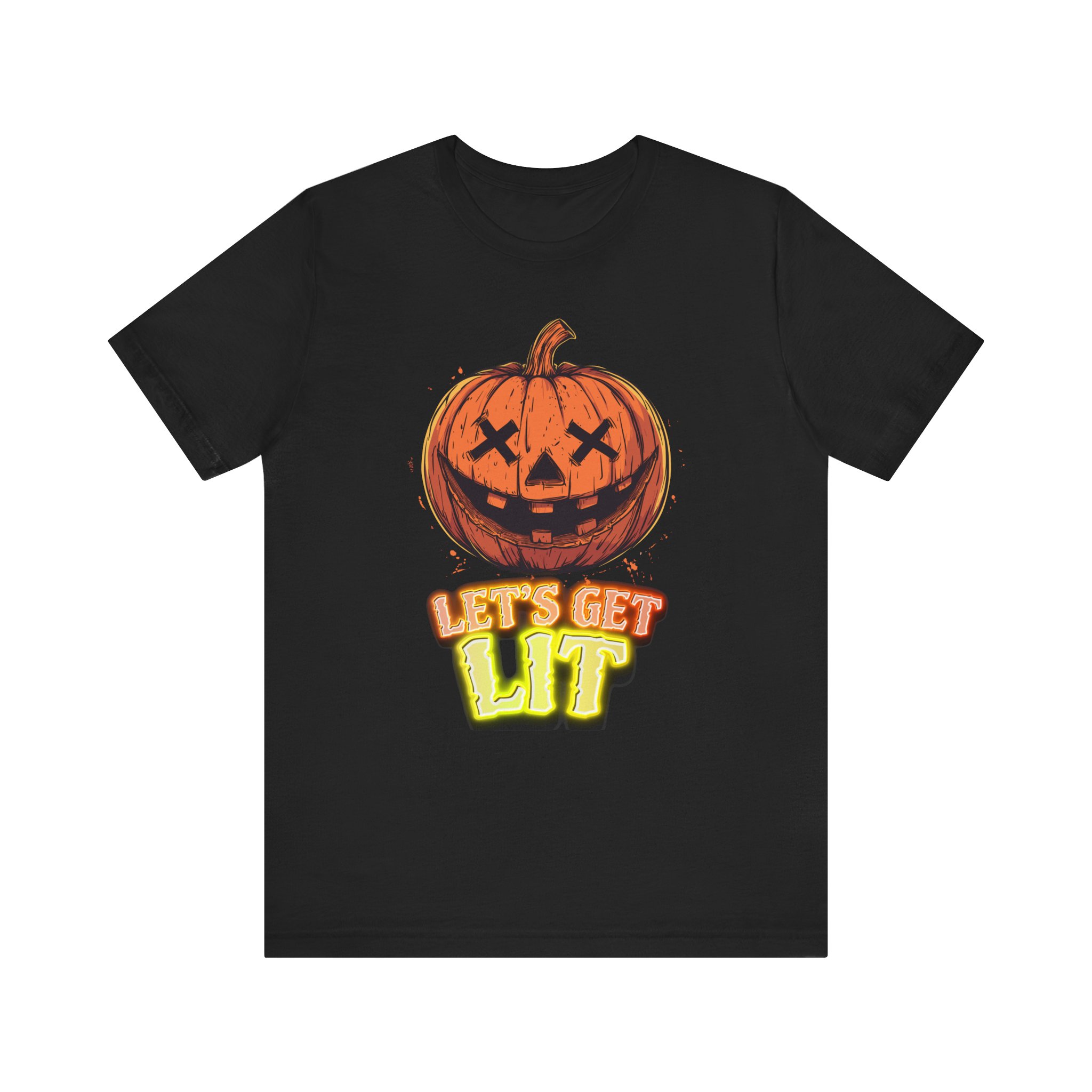 This Let’s Get Lit Pumpkin Tee is available in these colors: Black and these sizes: XS, S, M, L, XL, 2XL