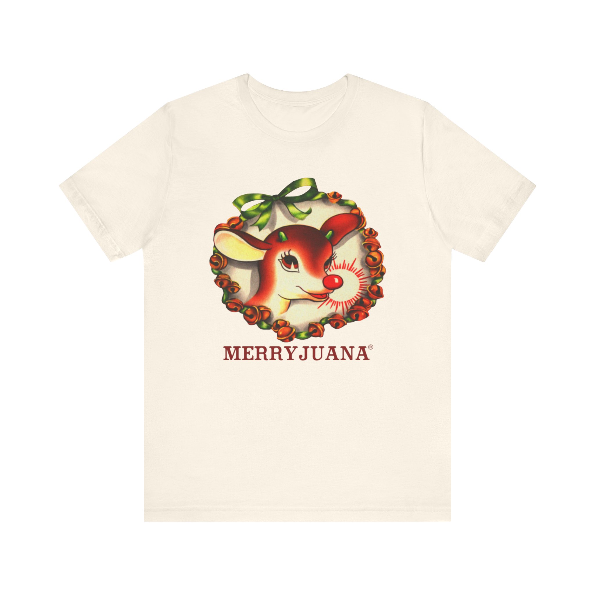 This Merryjuana Tee is available in these colors: Natural, Sage, Leaf, Oxblood Black and these sizes: XS, S, M, L, XL, 2XL