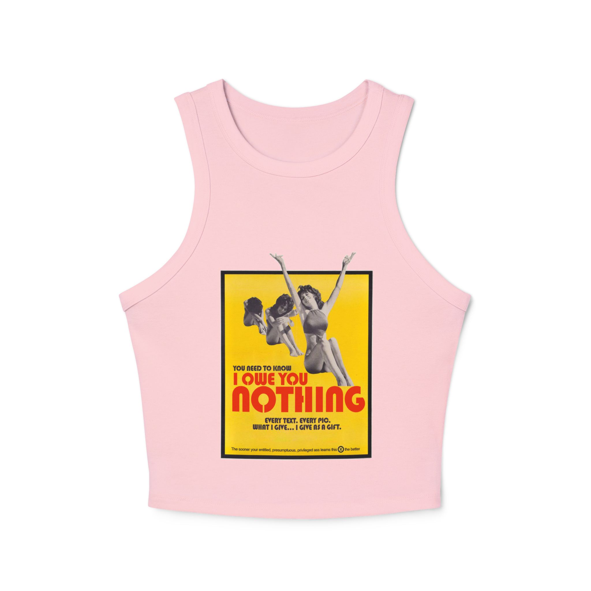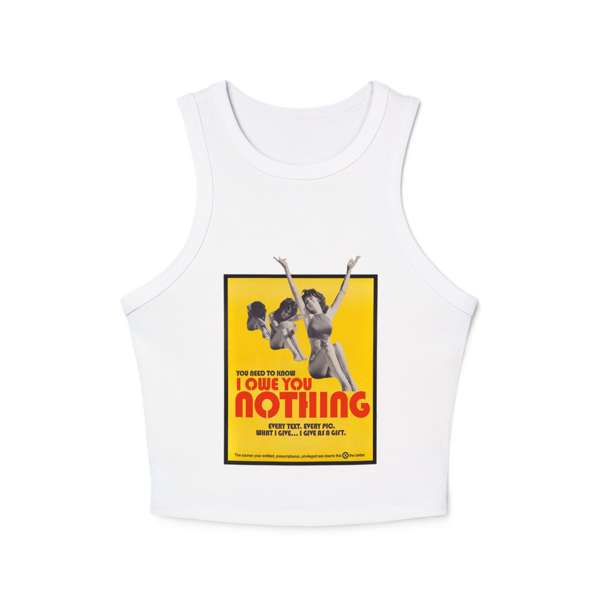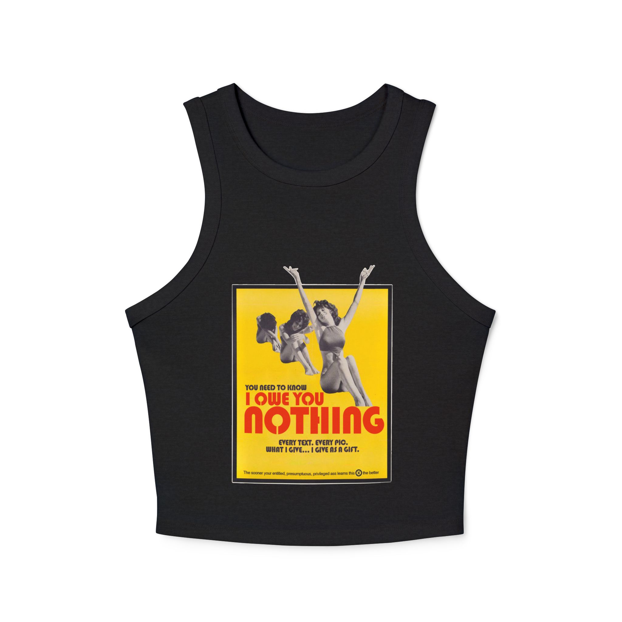 Owe You Nothing Women’s Micro Rib Racer Tank Top