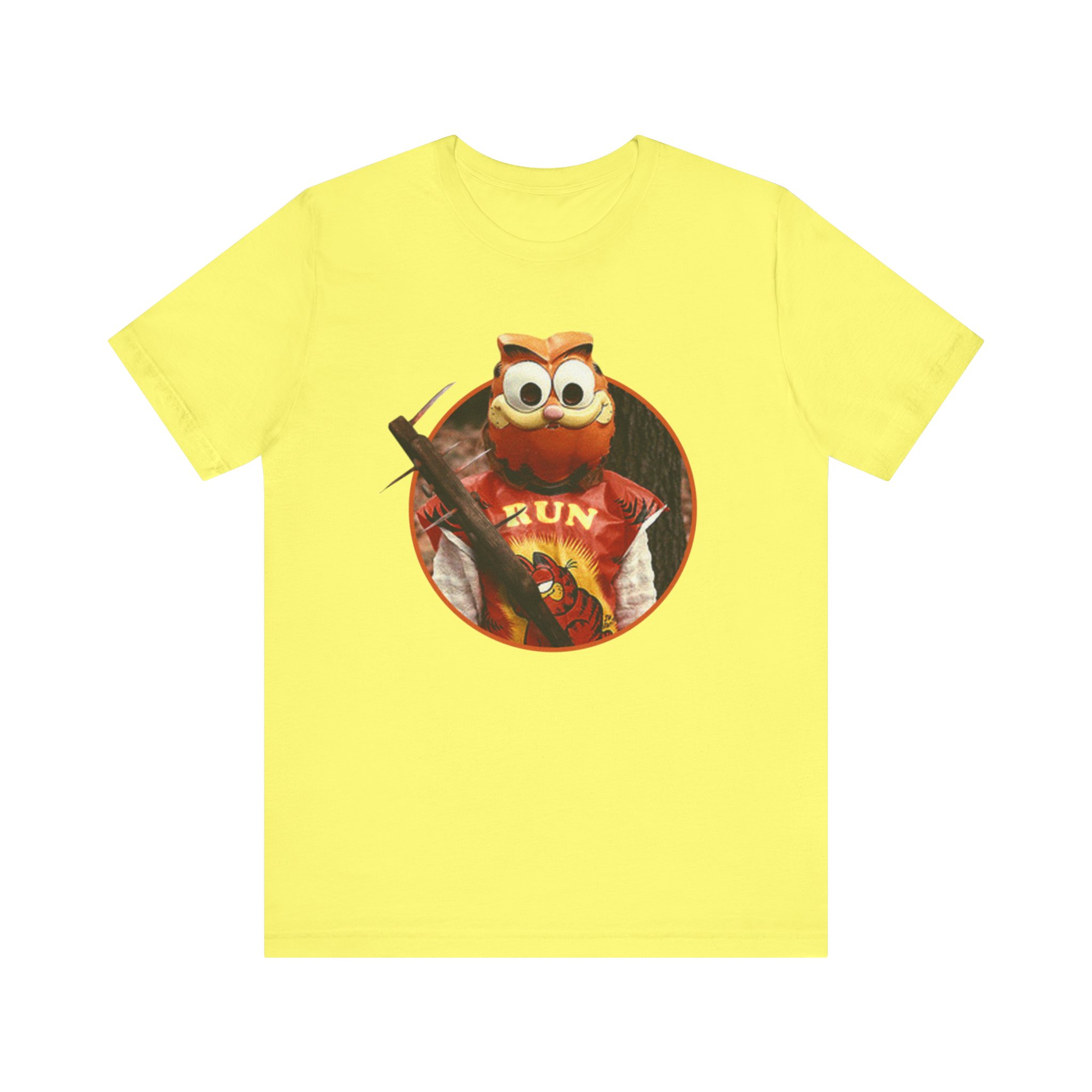 This RUN Tee is available in these colors: Black, Natural, Heather Brown, Yellow and these sizes: XS, S, M, L, XL, 2XL