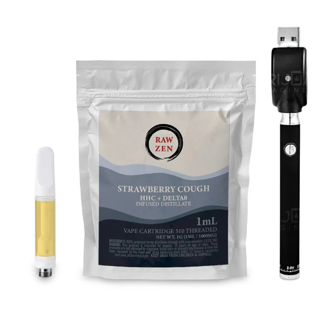 This Strawberry Cough Vape Kit is intended for use with legal hemp-derived products with THC less than 0.3%, or for tobacco.