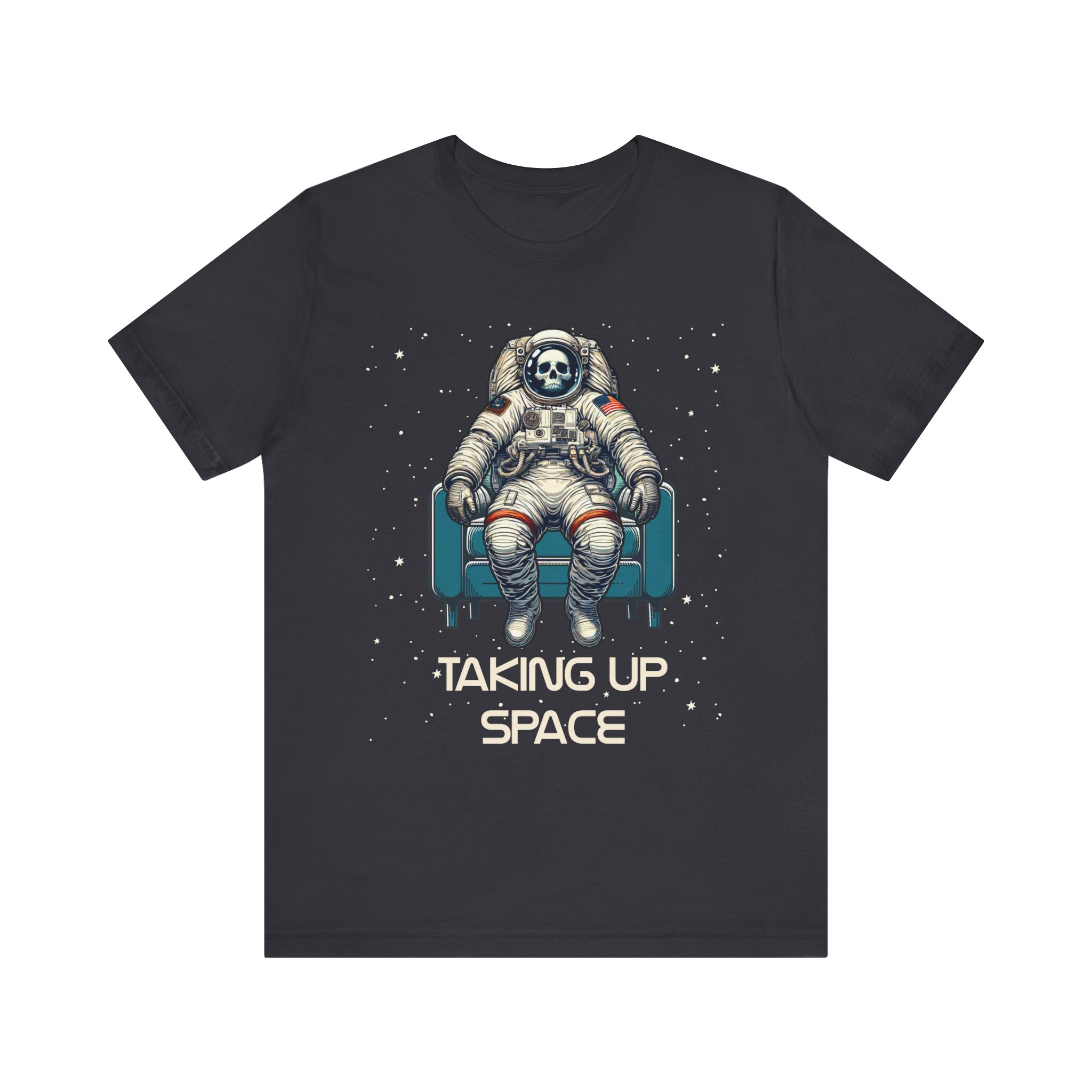 This Taking Up Space Tee is available in these colors: Dark Grey and these sizes: XS, S, M, L, XL, 2XL